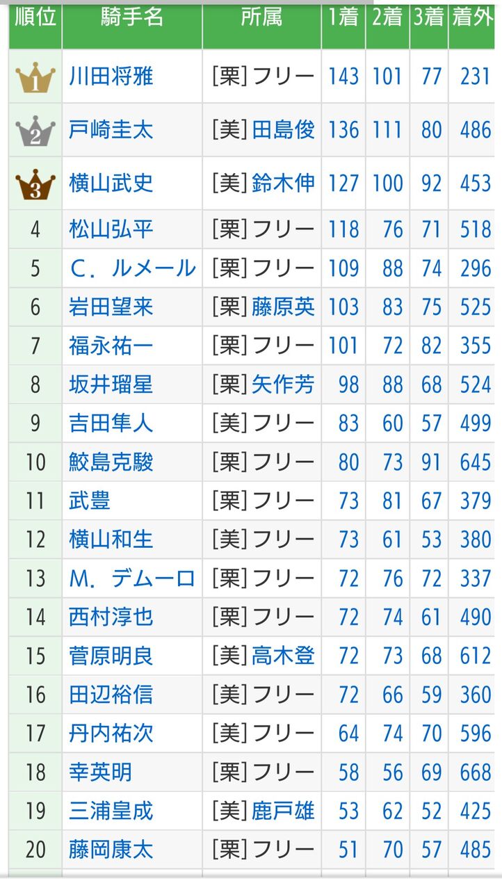競馬ニュース2歳【競馬】若手の2022年間成績 横山武127勝・岩田望103勝・坂井98勝・鮫島克駿80勝・西村72勝・菅原72勝・三浦53勝 2023年1月1日 2023年1月1日therock0425 Facebook Twitter はてブ Pocket Feedly 1: 名無しさん@実況で競馬板アウト 2022/12/31(土) 23:15:39.31 ID:BWSAntkU0 リーディングトップ20にランクインした若手はこの7人 今後、競馬界の中心になっていきそうな若手はこのあたりかな? 続きを読む Source: 競馬総合まとめ速報 Facebook Twitter はてブ Pocket Feedly
