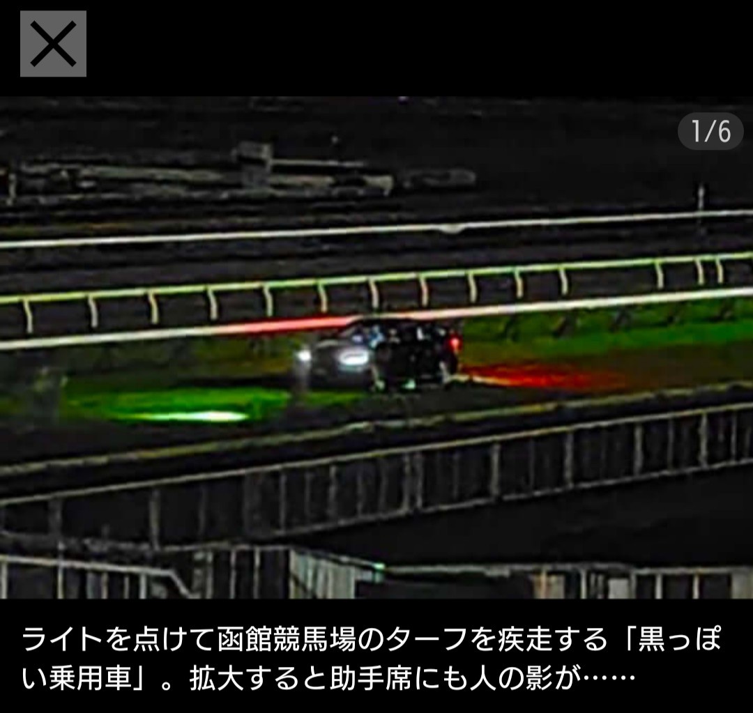 【衝撃写真】夜の芝コースを疾走する乗用車に「同乗者の影」 前代未聞「競馬場侵入事件」を起こしたJRA21歳ジョッキーが「行方不明」に
