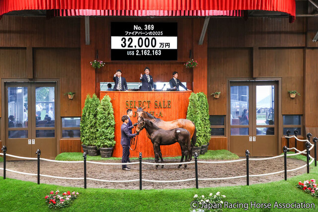 日本競走馬協会が主催する国内最大の競走馬セリ市「セレクトセール2025」は15日、北海道苫小牧市のノーザンホースパークで2日目の当歳馬部門セールを開催。キタサンブラック、イクイノックス父子やコントレイルの産駒が軒並み高額で落札される中、キズナ産駒「ファイアバーンの2025」が3億2000万円(税抜き)で落札された。購買したのは〝ショウナン〟の冠で知られる国本哲秀氏。