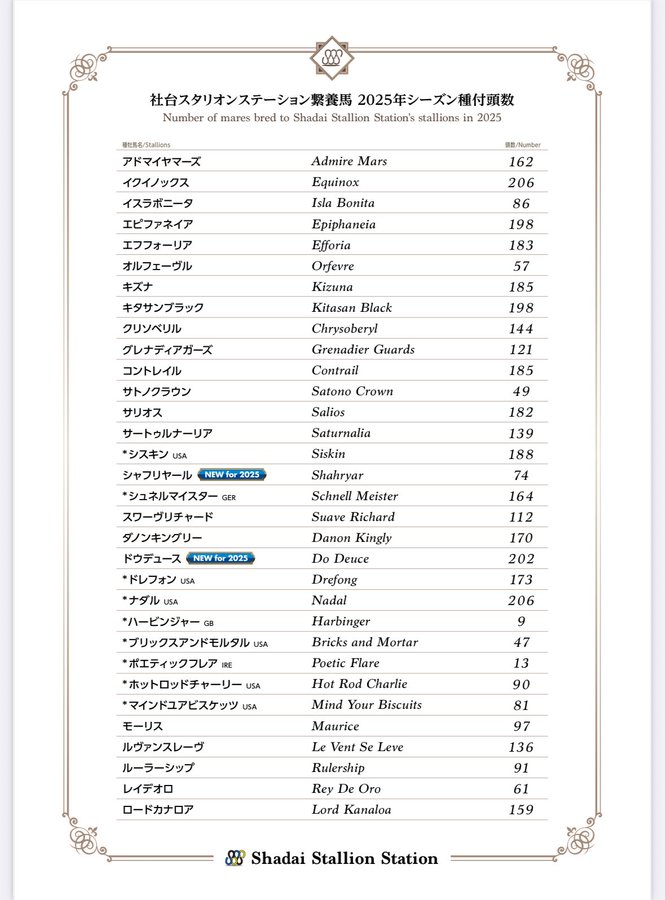 競馬ニュース2歳社台【社台スタリオンS】2025種付け頭数正式発表 2025年9月2日 2025年9月2日therock0425 Facebook Twitter はてブ Pocket Feedly 1: 名無しさん@実況で競馬板アウト 2025/09/01(月) 17:20:49.89 ID:Zdj0X/fg0 shadai-ss.com/cms/wp-content/uploads/2025/09/covering_2025_sss.pdf 続きを読む Source: ☆うまなみ・競馬にゅーす速報 Facebook Twitter はてブ Pocket Feedly