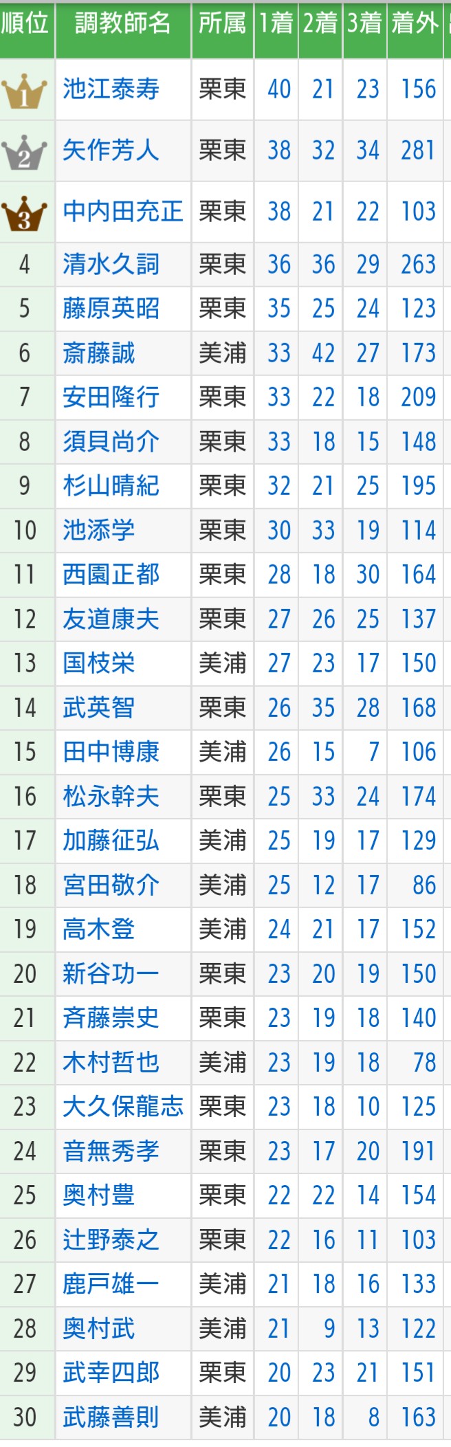 競馬ニュース2歳調教2022調教師リーディング大混戦! 1位の池江泰寿に矢作、中内田が肉薄 友道は昨年3位から一気に凋落 2022年9月24日 2022年9月24日therock0425 Facebook Twitter はてブ Pocket Feedly 1:名無しさん@実況で競馬板アウト:2022/09/23(金) 22:48:31.91 ID:iebkIJc20.net 池江さん5年ぶり優勝なるか?続きを読む Source: ターフ速報-競馬まとめ- Facebook Twitter はてブ Pocket Feedly